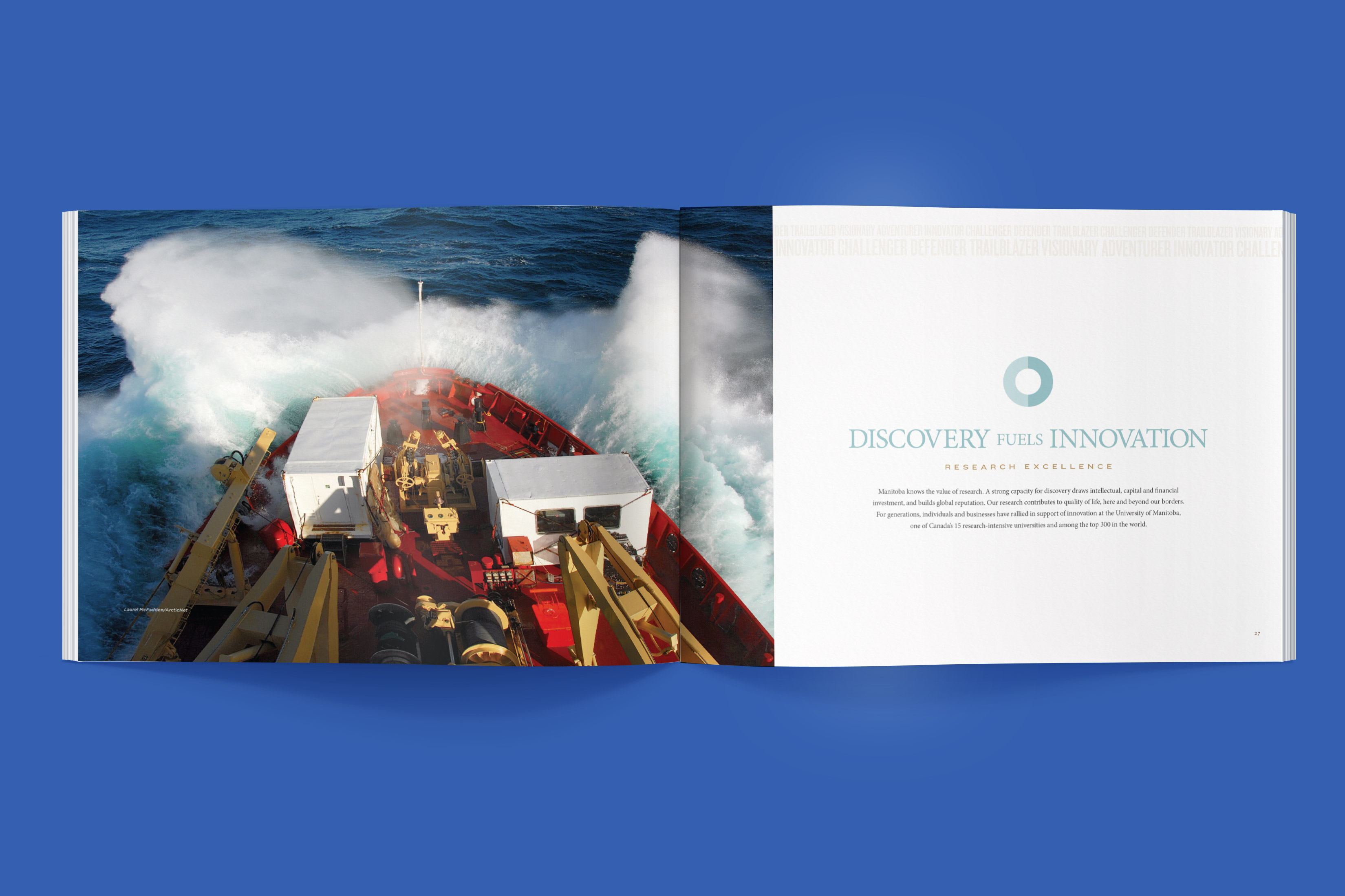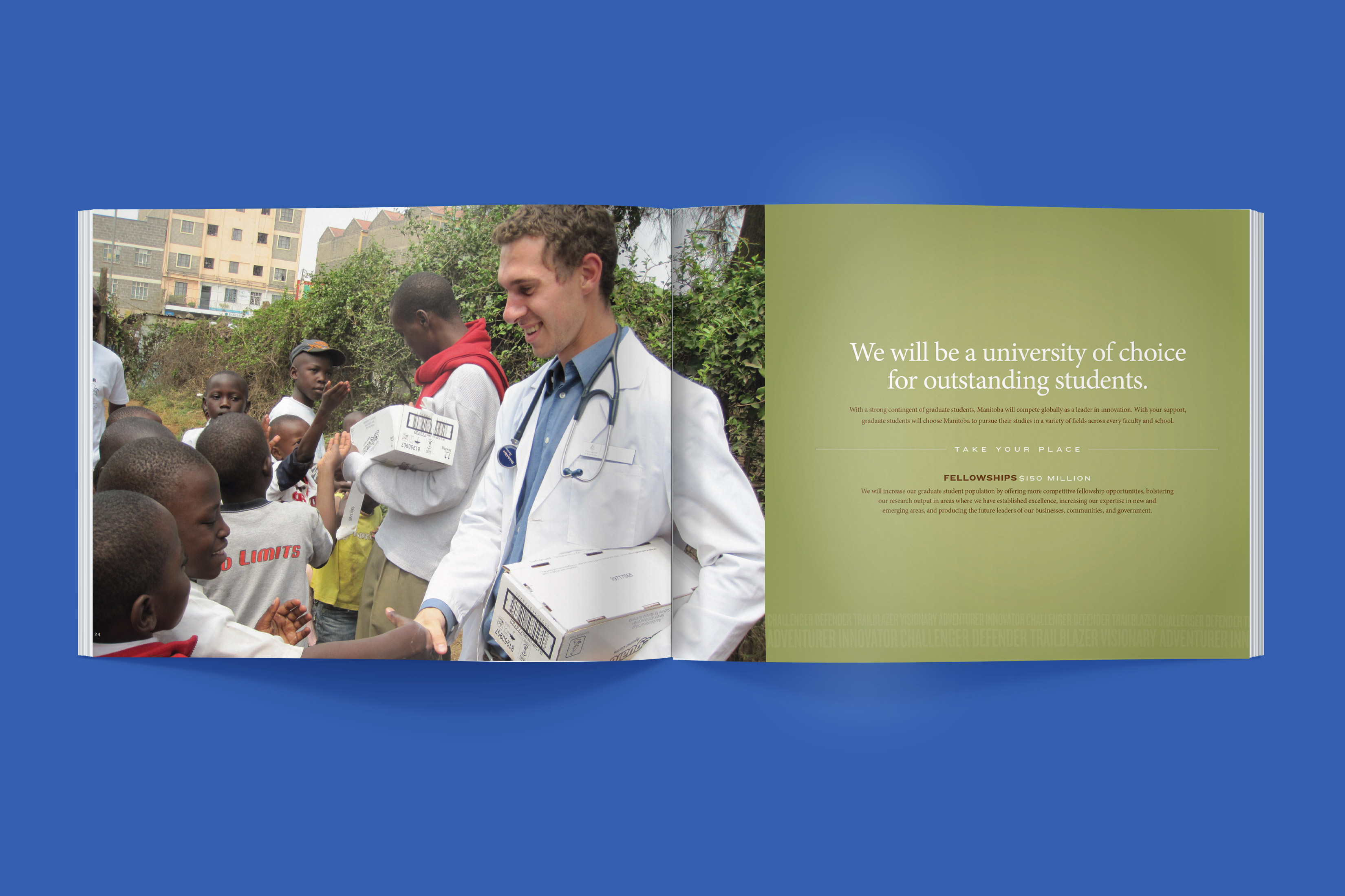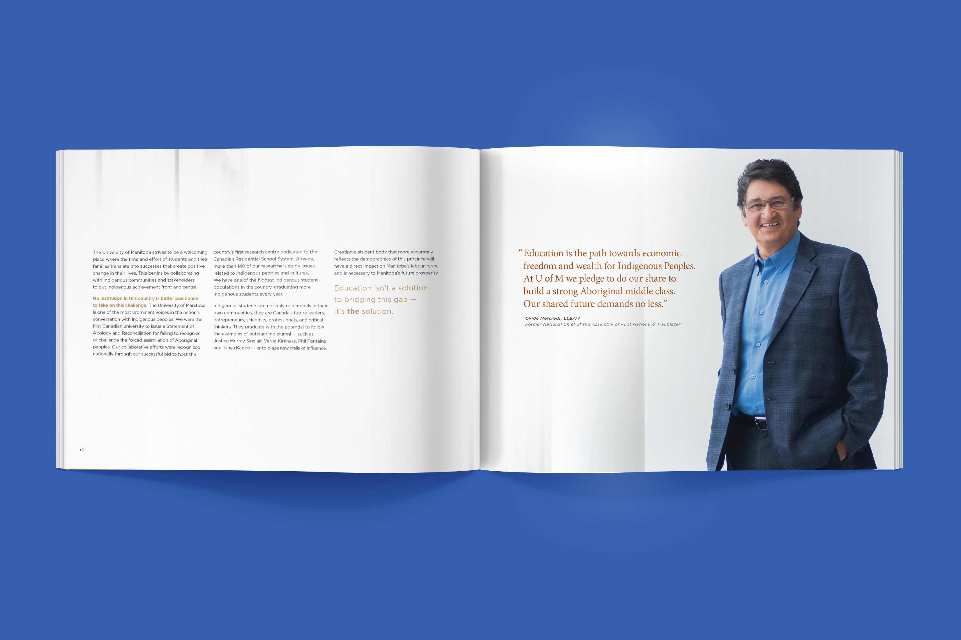 The University of Manitoba’s Front and Centre campaign garnered numerous awards of excellence, throughout its 4 year span of success. The Case for Support played a key role in sharing the story of UM and its goals for the future. The captivating visuals inspired and set the tone for a broad spectrum of marketing and event materials.